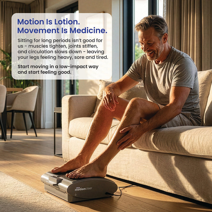 Sitting for long periods can be tough on our bodies, especially for those with aging joints or past injuries. Movement is medicine. The DR-HO'S MotionCiser offers a breakthrough solution for all ages and fitness levels - it's a low-impact, heated, passive motion exerciser that simulates walking and keeps you moving. The MotionCiser's passive movement activates the muscles in the legs and feet, while helping sore muscles, loosen and lubricate stiff joints and supports circulation. Engage your leg and feet muscles with DR-HO'S MotionCiser.