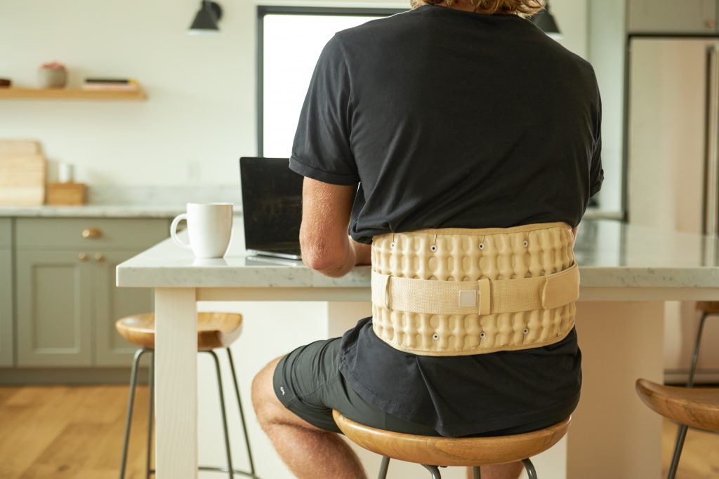 To employ it as a support belt, wrap it snugly around your waist and fine-tune the compression level to your preference. To harness its decompression benefits, recline on your back, encircle the belt around your waist, and utilize the hand pump to initiate inflation.