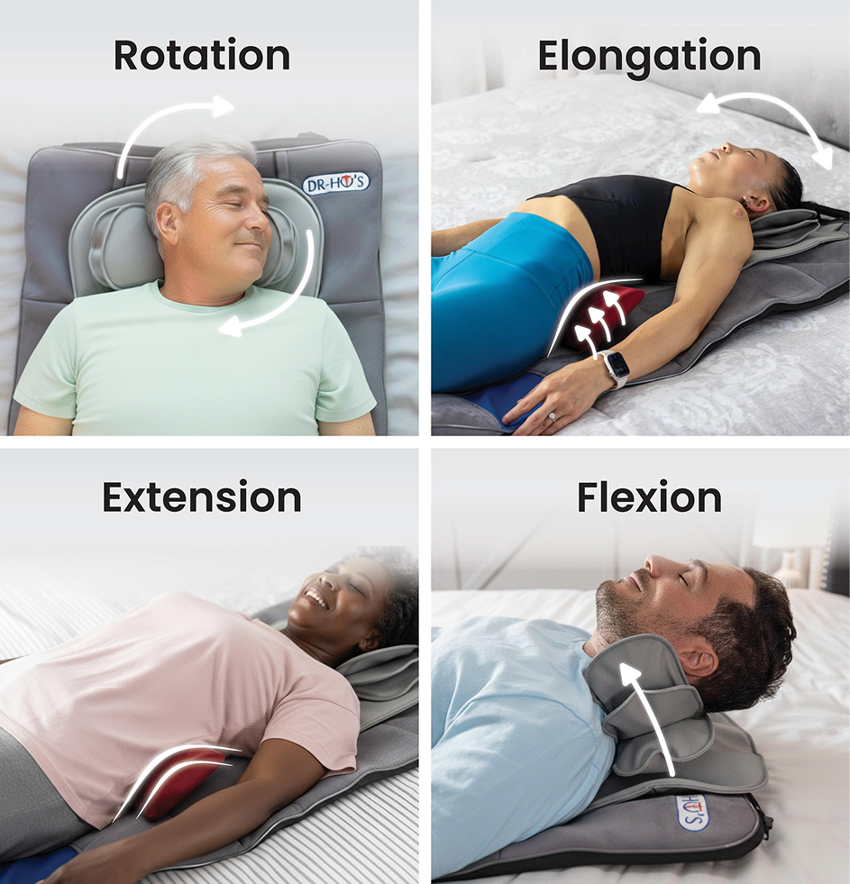 DR-HO’S MotionSolution Mat is a passive motion stretch and mobilization device that moves your spine in many different ways for you. Just rest on this mat and it will rotate, flex, extend, twist, lift and elongate your spine to help: