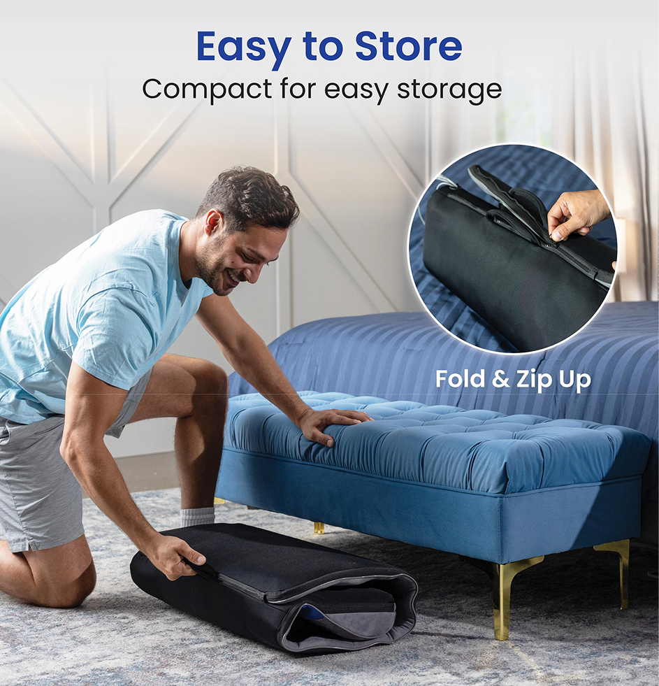 Just fold and zip for effortless storage that tucks neatly into any closet or under your bed.